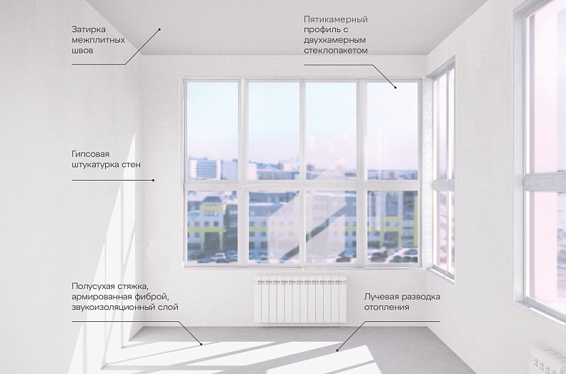 Мы подготавливаем квартиры к ремонту – чтобы вам было легко воплощать любой проект интерьера. В стандарт предчистовой отделки от УДСД входит стяжка полов, выравнивание стен под штукатурку и окраску, установленные двери и окна, приборы учета воды, тепла и света.